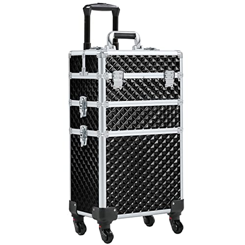 Yaheetech 3-i-1 kosmetisk väska låsbar sminkväska frisörväska på hjul stor vagn multiväska med förvaringslådor smink verktygslåda för resor