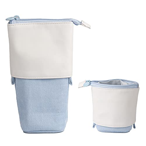 JANREAY 2-i-1 sött pennfodral teleskopiskt pennfodral, popup pennhållare, stativ-up infällbar pennhållare smink väska för studenter, kontor kvinnor, flickor pojkar, Ljusblå, Carry-On 20-Inch,