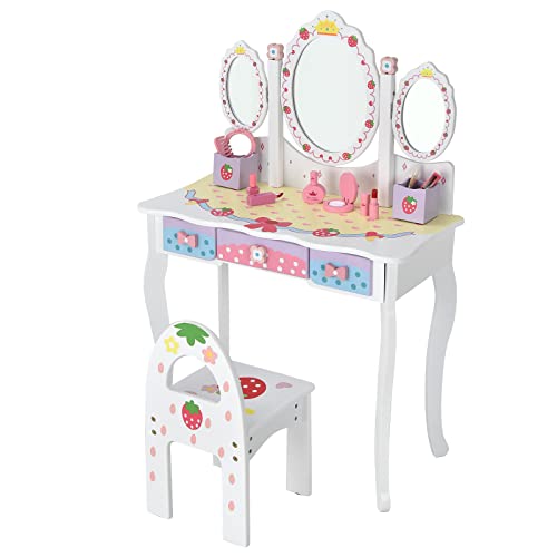 FANTASK Sminkbord för barn med pall, flickbord med avtagbar spegel och låda, prinsesssminkbord med tillbehör
