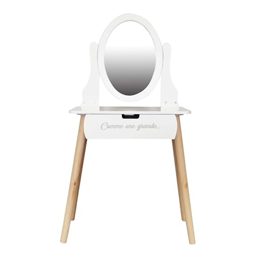 HOME DECO Barn HD6742 sminkbord för barn med sminkspegel, MDF-tall, vitträ, 55 x 30 x 109 cm