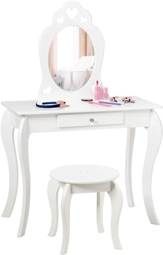 LIFEZEAL Sminkbord för barn, toalettbord med pall, låda och spegel, sminkbord för småbarn flickor, sminkbordsset, 79,5 x 42 x 106 cm (vit)