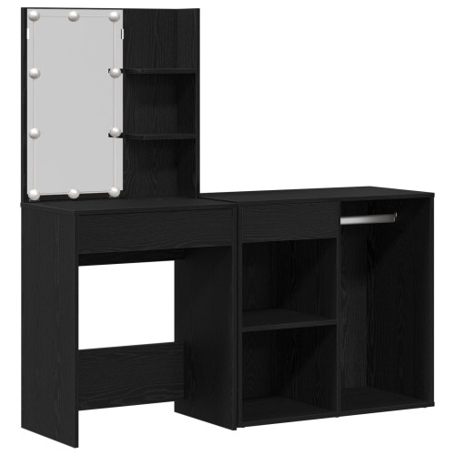 vidaXL LED Sminkbord Set Svart Ek 140 x 40 x 140 cm Konstruerat trä - 3333044