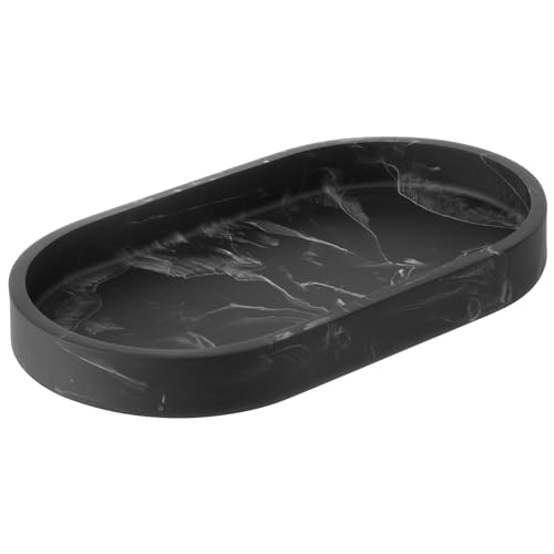 Navaris bricka för smycken och make-up marmorutseende – rund platta dekoration bricka sminkbord – badrum bricka svart – oval skål marmorplatta – dekorativ bricka marmorutseende
