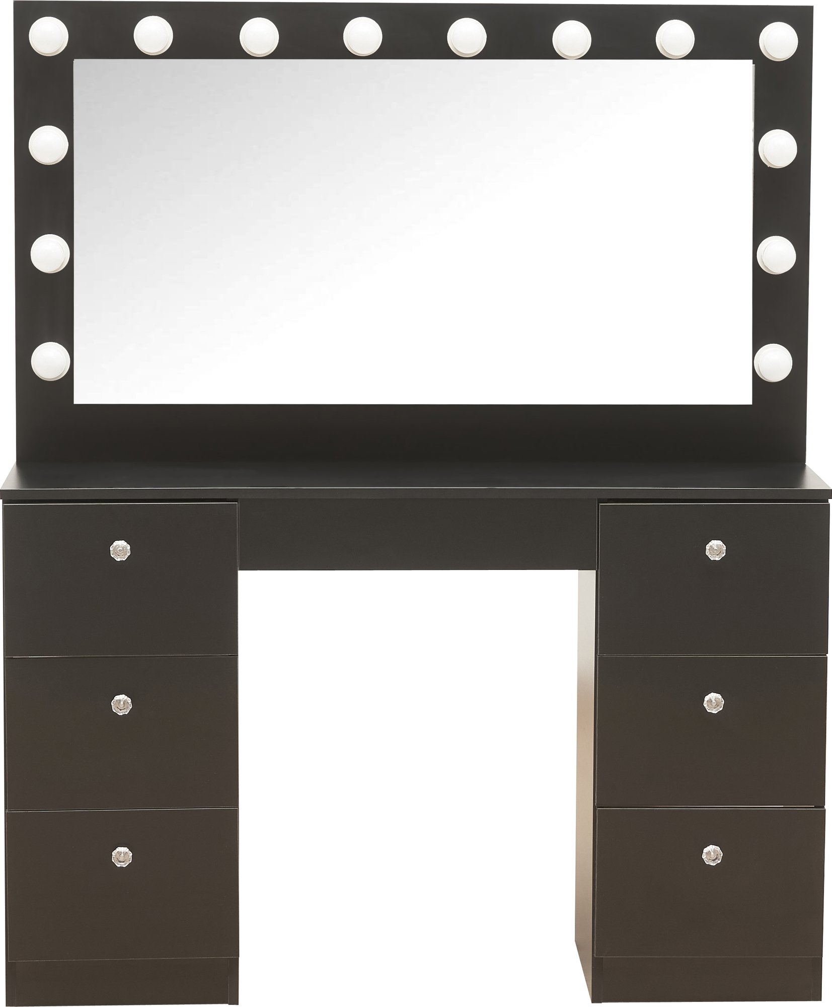 Skånska Möbelhuset Facada svart sminkbord med spegel och LED-belysning