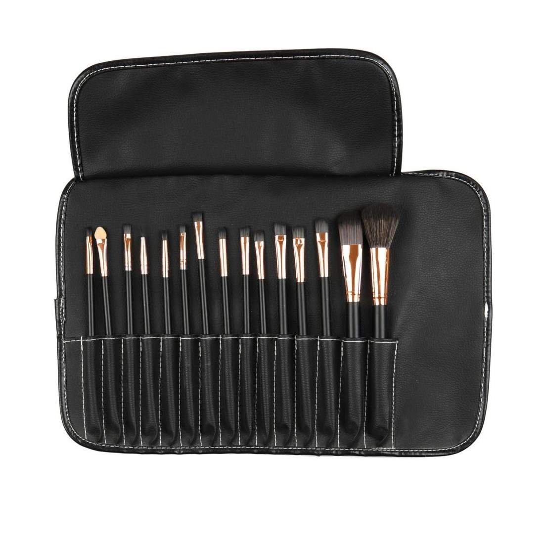 Makeupborstar ZOREYA 15 st sminkborstset med fodral sminkborstar rougeborste premium syntetisk foundation borste blandning ansikte puder rouge concealers ögon smink sminkborstkit Svart