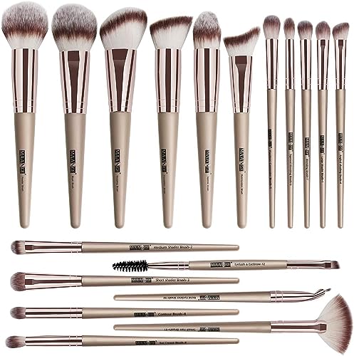 Premium syntetisk champagne guld sminkborste set – professionell 18-delars sminkborstset – timestamp för foundation, ögon, pulver och annat – exklusivt från sminkborstar