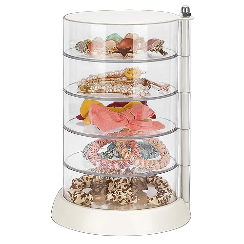 JessLab 5-nivås akryl hårtillbehörsorganisatör, klar flerskikts förvaringsdisplay för hårband, armband och smycken, bänkskåp sminkbox för flickor