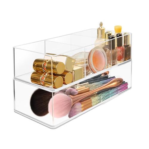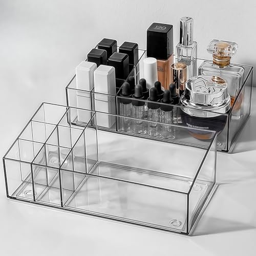 Withosen Sminkförvaring set med 2, akryl sovrum sminkbord arrangör stapelbar smink smink förvaring, makeup arrangör