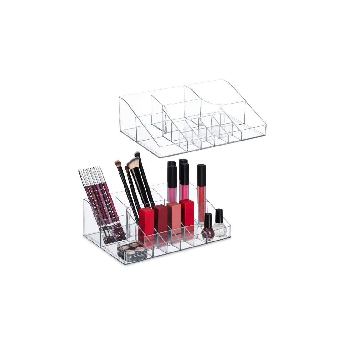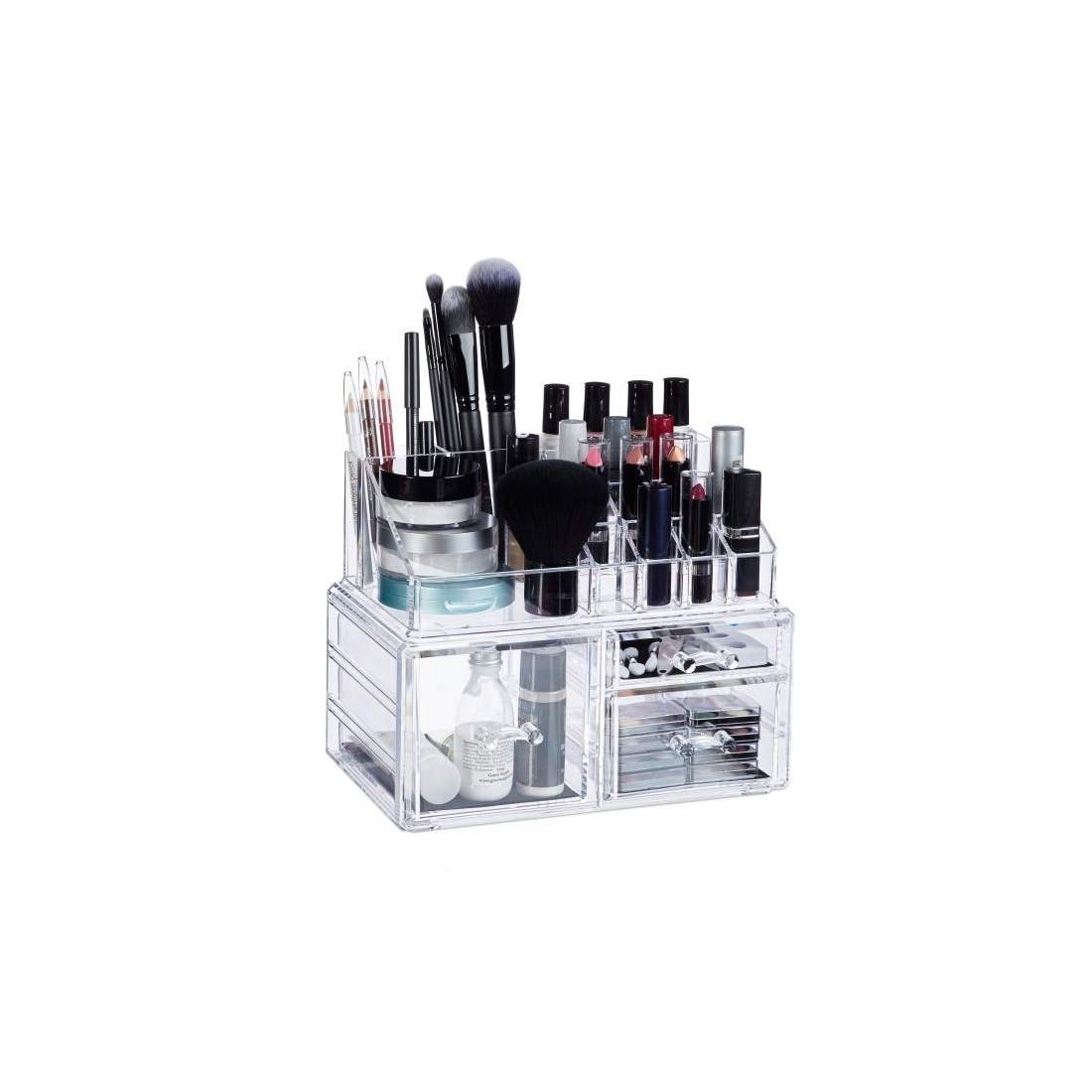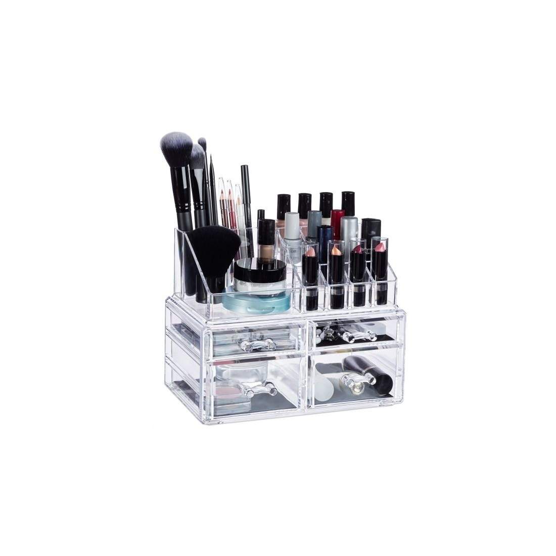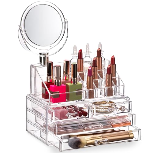Masisrs Genomskinlig sminkförvaring med spegel - Förvaring av kosmetika - 16 fack - Sortera smink och smycken - 4 lådor - Elegant utseende - Genomskinlig design - Sminkhållare