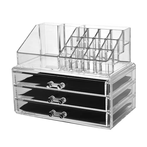 Sminkorganisatör för smink | Sminkförvaring Badrum Organisatör med 3 Lådor Akryl | Transparent Sminkhållare för Badrum Smink