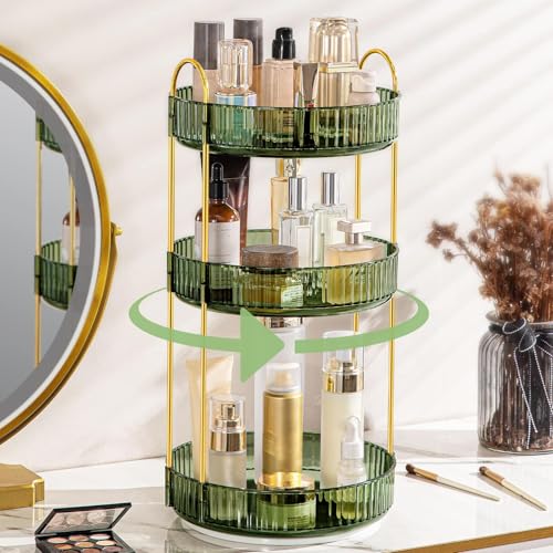 Weidace 360 roterande sminkorganisatör för sminkbord, badrum, bänkskiva, organiserare, snurrande parfym organisatör, hög kapacitet kosmetika och hudvårdsbyrå, sminkhållare (3 nivåer, grön)