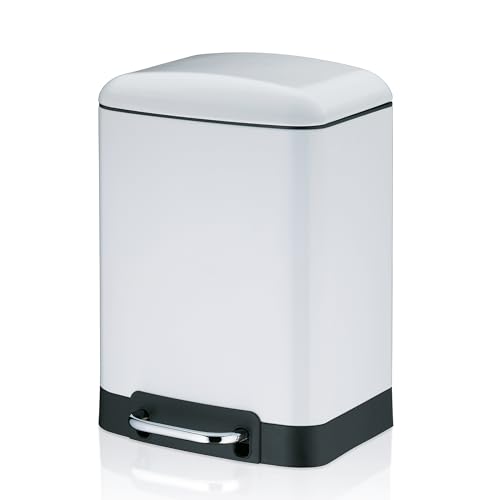 Spirella design sminkhållare "Moji" bad behållare svängbar lock avfallsbehållare med svänglock 5 liter med silikonbotten vit/dopp