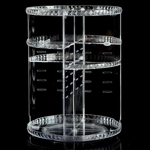 Cq akryl 360 graders roterande sminkorganiserare för badrum, 4 nivåer justerbara snurrande kosmetiska förvaringsfodral och sminkhållare displayfodral, klar