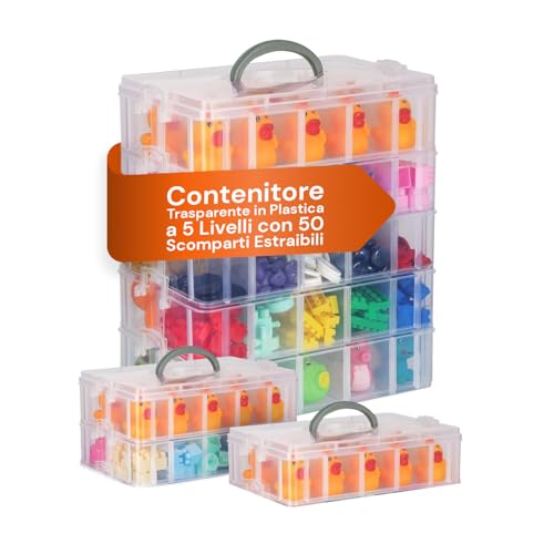Avilia Transparent behållare med 5 nivåer med 50 utdragbara fack för organisatör, perfekt för servett- och sminkhållare, lätt att stapla och använda individuellt