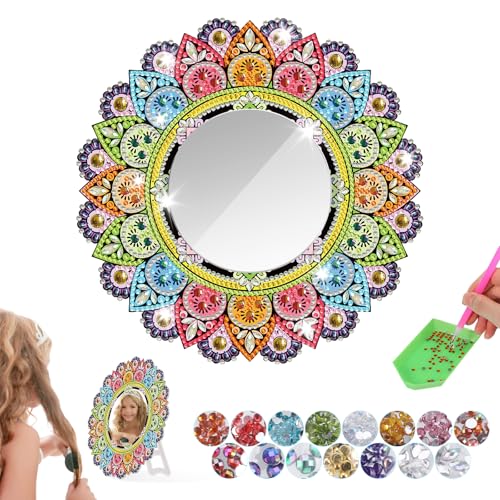 Starvortex 5D diamantmålning spegelkit, kristalldekoration för barn kreativ fritid, mandala gör-det-själv sminkspegel, barns manuell aktivitet, kreativt kit för present till flickor 6–12 år (stil A)