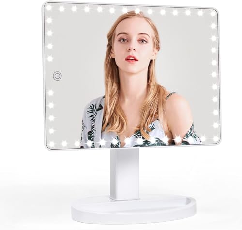 LuxeVue Sminkspegel med belysning, 40 × 30 cm LED-upplyst sminkspegel med justerbara LED-lampor, 3 belysningslägen, beröringskontroll, 360° vridfunktion, sminkbordsspegel