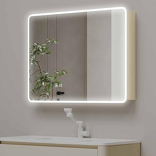 GLFNB Badrumssminkspegelskåp Rektangulärt spegelskåp med lampor Modernt väggmonterat medicinskåp med pekbrytare Anti-dim sminkspegel (Storlek: 70 * 65 * 12cm)