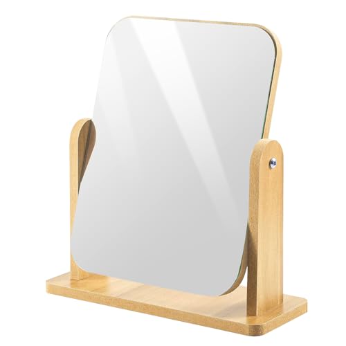 Bahan alamy Sminkspegel 360 graders rotation sminkspegel stående trä bordsspegel fristående sminkspegel för toalettbord, badrum, sovrum (22 x 17 cm)