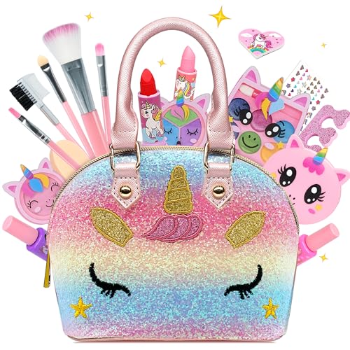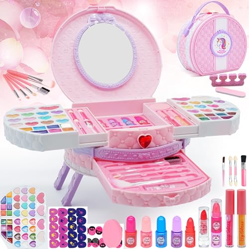 Barnsmink set flickor leksaker presenter – tvättbar sminkväska barn, smink barn makeup set spel, prinsessa jul födelsedagspresent presenter för flickor 4 5 6 7 8 9 10 11 12 år