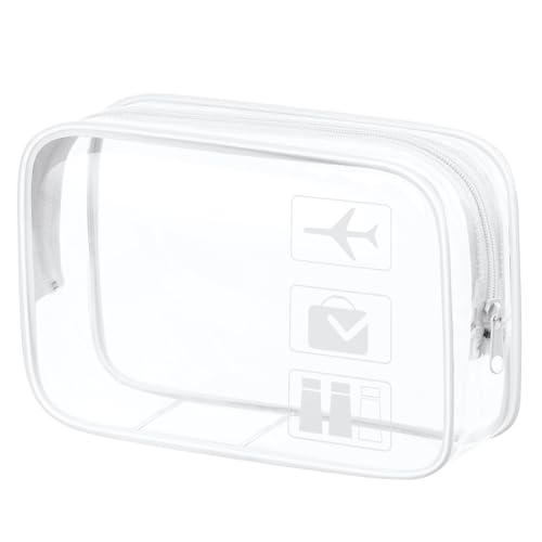 Aucuu Genomskinliga toalettväskor i PVC, vattentät bärpåse, TSA-godkänd resenecessär med dragkedja, sminkväska för män, kvinnor, barn, resor, affärsresa, 1 st vitt, 20 * 15 * 2cm