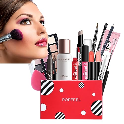 AFGSsm Sminkset för kvinnor, smink för tonåringar, komplett professionell sminkväska, allt-i-ett-smink, presentset, (14 delar)