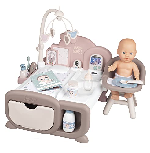 Smoby 7600220375 - Baby Nurse Cocoon Barnkammare - Smoby Baby Nurse Cocoon Barnkammare med Docka och 3 Lekområden, För Dockor upp Till 42 cm, Från 3 år