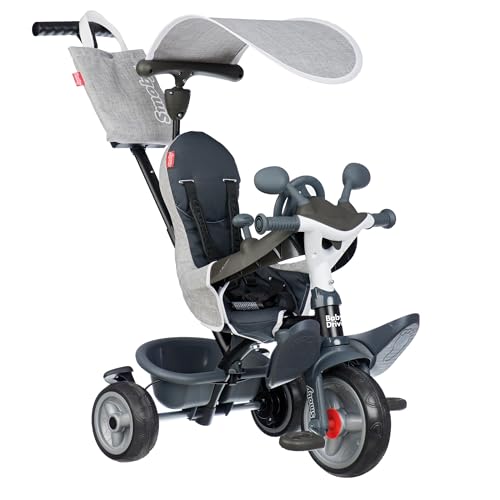 Smoby 7600741503 - Trehjuling Baby Driver Grå - Evolutiv 3-i-1 - För barn från 10 månader upp till 3 år