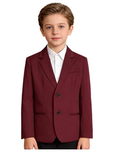 Agoky barn pojkar kostym jacka smoking kavaj jacka reverskrage kavaj en knapp jacka bröllop dop nattvardsgång kläder, Vinröd C, 158-164