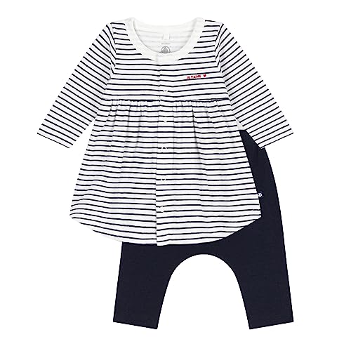 Petit Bateau baby-flicka, långärmad klänning och leggings, Vit marshmallow/blå smoking, 6 månader