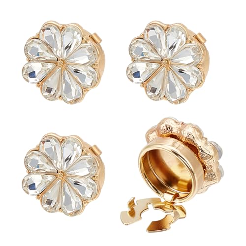 NBEADS 4 stycken 2 färger strass knappskydd, 25 mm avtagbar blomklämma på smycken knappklämmor för klänning kostym smoking skjorta tillbehör, guld och silverbas