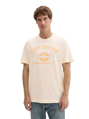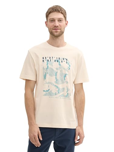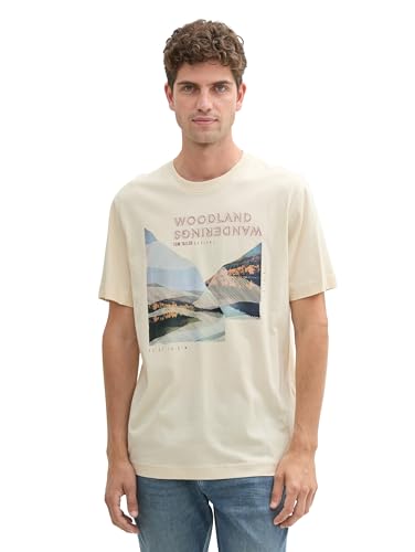 TOM TAILOR T-shirt för män av bomull med fototryck, 27469 - Smooth Light Sand, S