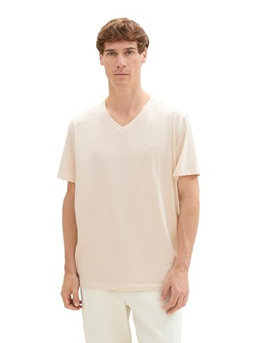TOM TAILOR basic t-shirt för män v-ringad, 27469 - Smooth Light Sand, XXS