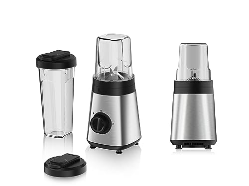 alpina Blender Smoothie Mixer - 300 W mixer - inkluderar 300 ml och 600 ml smoothiemugg - 2 hastigheter och pulsfunktion - rostfritt stål - silver/svart