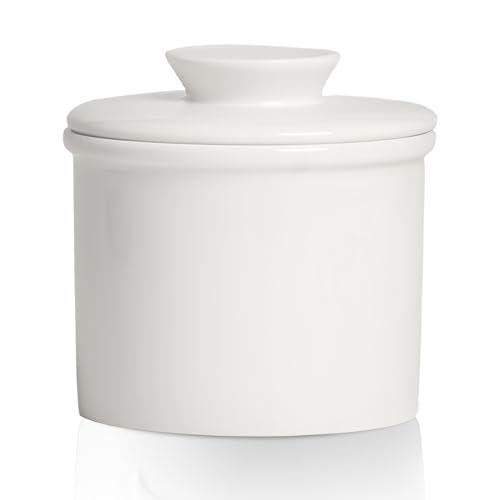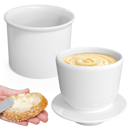 HOMURY Porslinsmör Keeper Crock: 1 x keramisk smörbehållare, rund smörbehållare, keramisk smörkruka med lock för färskt och stryktbart smör, för förvaring av smör (vit)