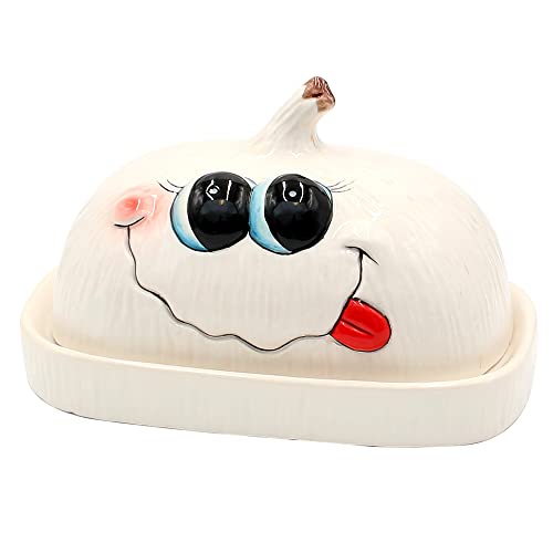 Dekohelden24 Keramisk smörburk/smörbehållare i vitlöksstorlek L/B/H: ca 17 x 11,5 x 10 cm, 10 cm