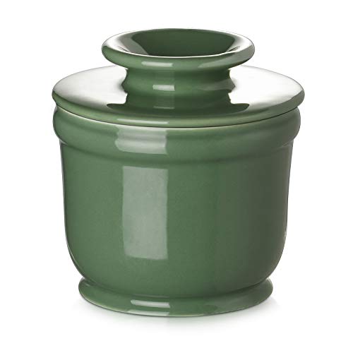 DOWAN {b>Porslinsmör, fransk smörlåda med lock för mjukt färskt smör, färsk smaksatt smörbehållare, till frukostsmör, grön