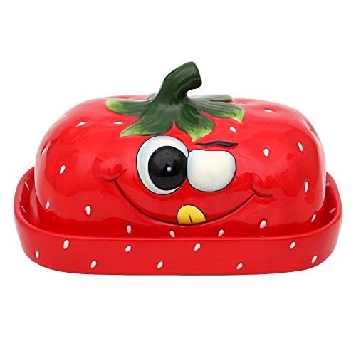 Dekohelden24 Keramisk smörburk/smörbehållare som jordgubbe i rött, mått ca 16,5 x 11 x 10 cm