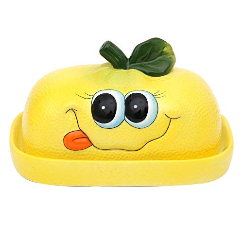 Dekohelden24 Keramisk smörburk/smörbehållare som citron i gult, mått ca 16,5 x 11 x 10 cm