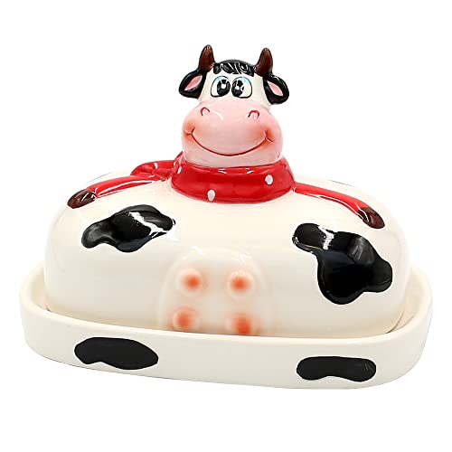 Dekohelden24 Keramisk smörburk/smörbehållare ko storlek L/B/H: ca 17 x 11,5 x 14 cm, svart-vit, 14 cm