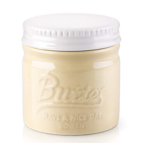 DOWAN Butter Keeper Crock, fransk smörskål, keramisk smörbehållare för mjukt smör, inget mer hårt smör och humaniserad vattenledning, beige