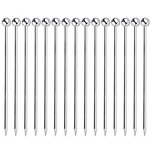 Dylan-EU 15 st cocktailplektrum i rostfritt stål 10,9 cm återanvändbara fruktpinnar för cocktailparty eller grillmellanmål, picknick smörgås, festtillbehör – silver