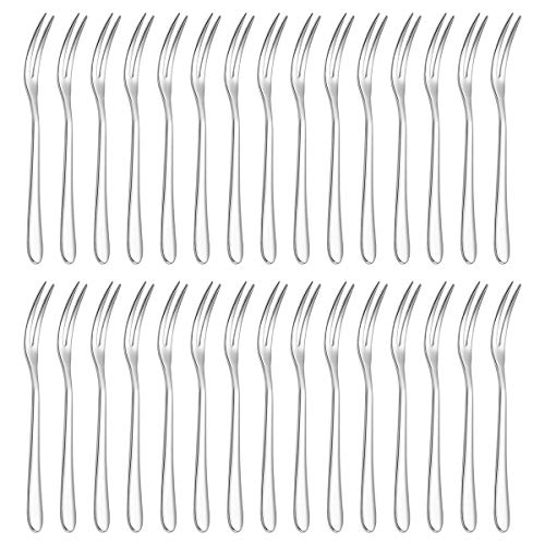 DBAILY Fruktgaffel, 30 st silver dessertgaffel rostfritt stål mini återanvändbara små tårtgafflar för förrättssallad cocktail smörgås ost (13 cm)