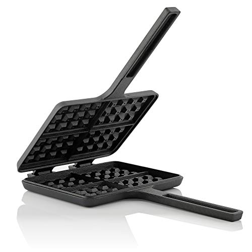 BBQ-Toro Våffeljärn, smörgåsjärn, järn för våfflor och paj, rektangulär dubbel form tillverkad av gjutjärn, svart, redan inbränd, rånjärn