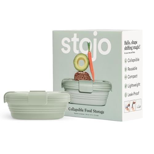 Stojo Vikbar smörgåslåda – salviagrön – 680,4 g – återanvändbar livsmedelsförvaringsbehållare – reseskål i silikon för varm och kall mat – för tillagning av måltider