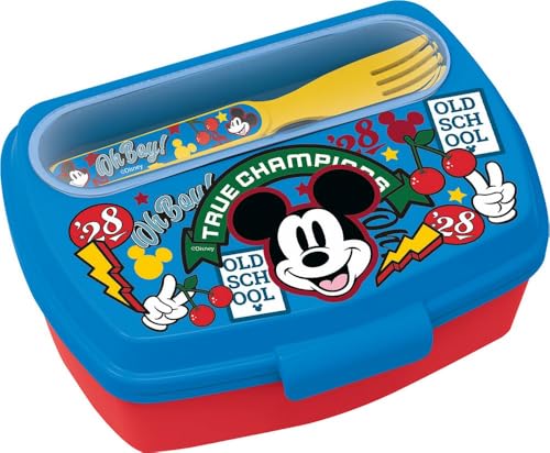 Tataway Mickey Mouse smörgåslåda med bestick - Lunchlåda för barn - Hållbar plastmatlåda - Mikrovågsbar - Officiell Disney-produkt