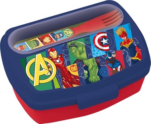 Tataway Tatatway Avengers smörgåslåda med bestick - Lunchlåda för barn - Slitstark plastmatlåda - Mikrovågbar - Officiell Marvel produkt
