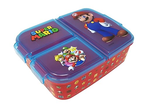 Theonoi Lunchlåda för barn, matlåda, smörgåslåda för barn, med fack, för förskola, av BPA-fri plast (Super Mario)