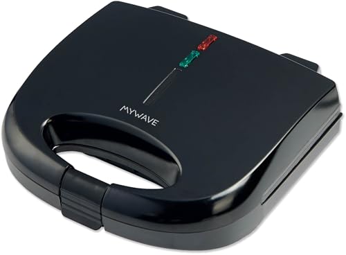 My Wave Smörgåsmaskin - 750 W effekt - för alla typer av livsmedel - 90° öppning - elektrisk grill med non-stick plattor - mått: 22,5 x 14 cm - svart