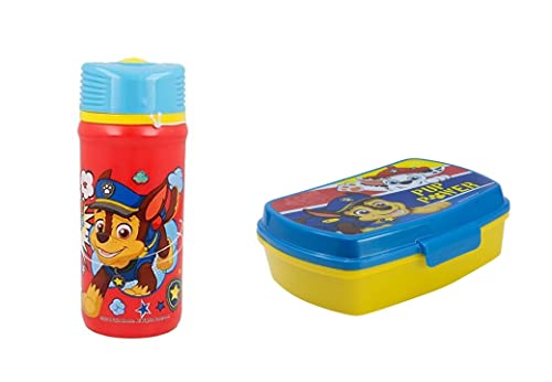ALMACENESADAN, 4957, Pack tillbaka till cole Hundpatrol, paw patrol; bestående av 400 ml sportflaska och flerfärgad rektangulär smörgåsmaskin, återanvändbara produkter, BPA-fria