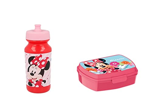 ALMACENESADAN 2664; Set tillbaka till Cole Disney Minnie Mouse; bestående av rektangulär smörgåsmaskin (Innermått 16,5x11,5x5,5 cm) och 400 ml sportflaska; plastprodukt; Non-BPA